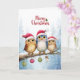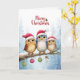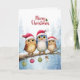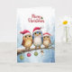 Tarjeta Watercolor Cute Owls Whimsical Christmas Folded