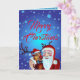 Tarjeta Watercolor Laughing Santa Claus Rudolf Smiling