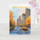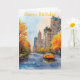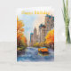 A watercolour Autumn/Fall in New York with trees and buildings. Suitable for a birthday for anyone