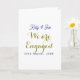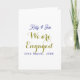 Tarjeta We are Engaged purple gold name date elegant simpl