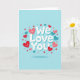 This greeting card features a sky-blue background with the words “We Love You” centered in friendly white letters, gently lifted with soft shadowing for a subtle layered look ❤️. Around the text, hearts in red, pink, and teal float like confetti, creating a cozy, affectionate scene that feels like friends gathering close. Some of the larger hearts have tiny smiling faces, adding a sweet, caring presence as if they’re looking toward the message together 🥰. Smaller hearts, without faces, are sprinkled throughout to guide your eye in a light, drifting pattern. The warm reds and soft pinks contrast nicely with the cool blues and teals, making the center phrase easy to spot at a glance. The text stays in the middle while the hearts frame it from all sides, with a few clustered nearer the corners for balance. Several hearts sit just above and below the lettering, and the smallest ones trail off toward the edges against the calm blue field.