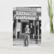 West Danville, Vermont, 1942. Frank Goss, agricultor de setenta y un años, frente a la tienda general y la oficina de correos de Gilbert S. Hastings leyendo su correo, que incluye una tarjeta postal que dice que el hombre contratado el año pasado "no estará presente este año debido a que está en California en la Marina".