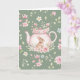 Tarjeta Whimsical Bunny Green Teapot Floral Easter