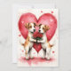 Tarjeta Whimsical Dogs Valentine Hearts and Red Roses