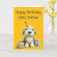 Celebrate with tail wags and cake! This cheerful birthday card stars an adorable Old English Sheepdog wearing a festive party hat, standing proudly beside a candle-lit birthday cake. With its lively charm and customizable text, it’s perfect for dog lovers of all ages—whether you're sending birthday wishes to a friend, family member, or fellow pup enthusiast.