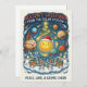 This unique and whimsical holiday design features the entire solar system coming to life to exchange gifts. Watch as happy planets party alongside dancing people, cheerful animals, and festive trees in a joyful, surreal gathering. Perfect for astronomy lovers, science fiction fans, or anyone who wants to send a greeting that is truly out of this world. High-resolution print ensuring vibrant colors and crisp details.