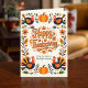 Aprovecha el acogedor espíritu del otoño con esta hermosa tarjeta de Acción de Gracias. El diseño cuenta con un maravilloso borde de arte folclórico repleto de encantadores pavos, calabazas y una dispersión de hojas caídas vibrantes y detalles estilizados de flores. En el centro, "Feliz Día de Acción de Gracias" es un audaz punto focal naranja, con el espacio debajo perfectamente diseñado para que añadas tu propio toque especial. El mensaje dentro de la tarjeta también es completamente personalizable.