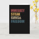 Para los amigos de EE.UU. a los que les gusta beber un whisky. Como comer un filete en la barbacoa y tener pistolas. Por todos los que aman la libertad. Whiskey, filetes, armas y libertad.