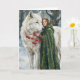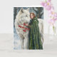 Tarjeta White Wolf Redhead Druid Winter Berries Fantasy Ar
