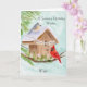 This hand-painted watercolor features a charming birdhouse adorned with a Happy Birthday banner, as a tufted titmouse and a cardinal stop by on a crisp January winter day. Soft seasonal details and gentle colors create a warm, thoughtful scene, making it a lovely birthday piece for wife who celebrates in January.