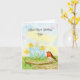 This spring-themed birthday card features a daffodil-inspired birthday cake, the flower of March, with a robin perched on a wooden cake stand, creating a cheerful and meaningful design for a wife's birthday.