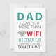 Muestra a papá cuánto significa para ti con nuestra exclusiva tarjeta de WiFi del Día del Padre. Con el divertido y relatado texto "Papá, te amo más que a las señales de WiFi - ¡y eso es mucho decir!", esta tarjeta es perfecta para padres conocedores de la tecnología y aquellos que aprecian una buena risa. Diseñada con un toque moderno y una presentación elegante, es una forma sincera de expresar tu amor y aprecio. Haz que este Día del Padre sea inolvidable con una tarjeta que habla mucho sobre tu conexión y amor. ¡Ideal para cualquier padre que valore tanto el humor como los sentimientos sinceros!