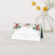 Este bonito diseño de la tarjeta de lugar cuenta con una rama de acuarela con follaje verde y bayas rojas sobre un fondo blanco brillante. Hay espacio para escribir a mano en un nombre y un número de tabla. La parte trasera/interior es verde en el bosque.