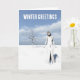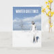 Tarjeta Winter Greetings. Female elf walking in the snow
