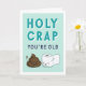 You're HOW old? Celebrate a friend or loved one's birthday with some classic "potty" humor. Card features a smiling poop and toilet paper illustration with "holy crap, you're old" in retro lettering. Customize the inside message or leave as is; inside reads "here's to wiping away another year -- happy birthday."