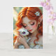 A birthday card for any girl or woman. On the front is a beautiful red haired fairy holding her ittle white dragon with purple chibi eyes. Inside it wishing someone a magical birthday and also has a surprise coloring page.