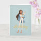 Tarjeta Woman in Blue & White w/ Cute Bunny Bday