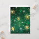 Tarjeta Xmas copos de nieve dorados sobre fondo verde