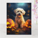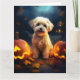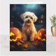 Tarjeta Yorkipoo de Halloween con calabazas temerosas