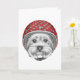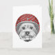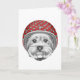 Este diseño presenta un retrato de un Terrier de Yorkshire con un casco de polka verde azulado y rojo punteado.