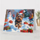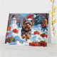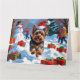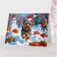 Tarjeta Yorkshire Terrier en Nieve con Gorra Navidad