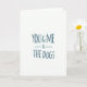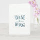 This card is cute and heartfelt, with the message “YOU & ME & THE DOGS” as the main focus. The words are stacked in a neat vertical layout right in the center of the front. The lettering looks like slightly uneven hand-drawn script, giving it a personal, written-by-someone-you-love feel. The text is a deep teal or muted turquoise color that stands out clearly against a plain white background. There are no characters or extra objects, just the words and a lot of open space that makes the message feel calm and direct. The ampersands tie the phrase together like a little link between you, your person, and your pups, which fits a sweet romance or close friendship theme ❤️. It feels like a nod to cozy days at home and loyal companionship, perfect for a simple Valentine’s note