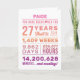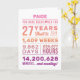 Personalized “You Have Been Loved For 27 Years” birthday card featuring milestone numbers—years, months, weeks, days, hours, and minutes. Add the recipient’s name for a custom touch and edit the inside message to make it your own. A unique, heartfelt birthday card perfect for a 27th birthday celebration.