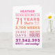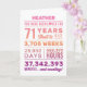 Personalized “You Have Been Loved For 71 Years” birthday card featuring milestone numbers—years, months, weeks, days, hours, and minutes. Add the recipient’s name for a custom touch and edit the inside message to make it your own. A unique, heartfelt birthday card perfect for a 71st birthday celebration.