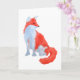 Ilustración juguetona y dibujada a mano de un pequeño zorro lindo en una tarjeta de felicitación. Obra de arte: Pastel al óleo sobre papel. Derechos de autor Dominic A. White. Todos los derechos reservados.