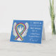 La carta de saludo o nota de ángel de la guarda presenta la imagen de un cuadro de ángel de cinta azul, de oro de mariscos y morado. La tarjeta dice "¡Espero y apoyo la toma de conciencia por una<Add Your Cause Here>cura!" ¡Añade tus propias palabras o mensajes opcionales a la tarjeta de felicitación para los ángeles de arte personalizados y para los guardianes de la conciencia! También puede eliminar el texto de las tarjetas de notas de ángel de sólo arte. Las tarjetas de felicitación de arte de la cinta de pintar de ángel de la conciencia azul, marrón y púrpura se pueden personalizar con mensajes personalizados para crear gran conciencia de la causa tarjetas de arte para recaudadores de fondos, regalos de concientización u otros eventos especiales. Dé esta tarjeta de arte de ángel como regalo para cualquier ocasión. El color del cáncer de vejiga es amarillo o marrón, azul y púrpura. El amarillo fue el color inicial de la cinta de sensibilización. La nueva cinta multicolor fue establecida por la Sociedad Americana de Cáncer de Frontera. ¡Que esta cinta azul, de oro y morado ayude a apoyar estas causas!