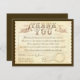tarjeta de agradecimiento de boda con diseño de boleto con florituras antiguas y tipografía antigua.
