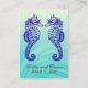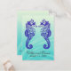 Las tarjetas de boda con temática de playa o destino cuentan con dos caballitos de mar sobre un fondo oceánico con olas en una paleta contemporánea azul, marrón y blanco, así como campos de texto que puedes personalizar a tu gusto.