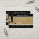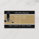 Tarjetas de visita con doble tarjeta que funcionan bien para un servicio bilingüe. Diseño moderno de dos lados que incluye fondo marrón y blanco, imagen de un hombre de limpieza con una máquina de limpieza del suelo, y la posibilidad de personalizar el texto para hacer este trabajo para su servicio de limpieza. Por un lado, el inglés y el español o cualquier otro idioma se ponen en segundo lugar para alojar a los clientes.