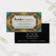 Tarjetas de visita de promoción de productos: Patrón dorado, verde azulado y negro inspirado en el Batik, que le da también un toque tribal, diseñado con un área de texto de personalizable opaco claro - esta plantilla de tarjeta de visita tiene mucho espacio para añadir sus detalles - ideal para negocios y ocupación dentro de la tienda de moda, joyería alternativa, propietarios de puestos de mercado, la salud y belleza, spa, terapéutico, clarividente, yoga, reiki, masaje, sólo para nombrar algunos más también las artes, hospitalidad como cafés, +, más. Personalizable completo ~ o si se queda atascado, contacte conmigo para hacer el diseño de usted.