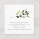 Una tarjeta de visita botánica de forma cuadrada única presenta una rama de olivo acuarela pintada a mano por Victoria Grigaliunas. Utilice los campos de plantilla para personalizar con su nombre, título, información comercial y dirección web de código QR. Añada sus detalles de contacto completos al reverso en blanco sobre un fondo verde de sabio sólido complementario. Adecuado para cualquier negocio o para usar como una tarjeta mommy. Para ver diseños más exclusivos de tarjetas de visita y plantillas profesionales de tarjetas de visita visite www.zazzle.com/dotellabelle