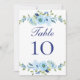Florales de color azul y verde sobre estas tarjetas de número de tabla boda. Vea nuestros productos de coincidencia en nuestra colección de Bodas Florales en azul. https://www.zazzle.com/collections/blue_green_floral_wedding_invitation_collection-119330556136490020