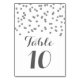 Tarjetas con números de tabla de moda y glamorosas en un patrón de confeti plateado. Personalizar estas tarjetas con los números de su tabla para una adición especial a las tablas de su boda. También para fiestas de cumpleaños y aniversario. (tenga en cuenta que el efecto purpurina sólo está impreso)