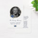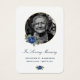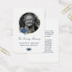 Tarjetas de memoria floral personalizadas azules y doradas/tarjetas de oración funerarias con un marco de fotos dorado adornado con rosas azules y vegetación.