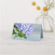 Tarjeta de lugar de acompañamiento estilo tienda de campaña para boda floral acuarela con hortensias azules. Un hermoso diseño floral en tonos azules y púrpuras ideal para sus bodas de primavera o verano. Algunos elementos provienen de ArtsyBee, Pixabay.