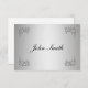Elegantes tarjetas de acompañantes en plateado metálico y remolino blanco. Hay hermosas tarjetas de acompañantes que se utilizarán para informar a sus invitados de la mesa asignada.