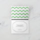 Tarjetas personalizadas de agradecimiento diseñadas con un moderno patrón de zigzag chevron en color verde y gris alternado, "gracias" en texto verde y gris en un marco blanco sobre una banda negra, y personalizadas en el interior con su propio mensaje personalizado de gratitud. También puede borrar fácilmente el texto de la plantilla para dejar estas tarjetas en blanco para escribir a mano tus sentimientos de agradecimiento. Este diseño elegante y el uso del color hacen que estas tarjetas sean perfectas para duchas de novias y bodas.