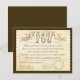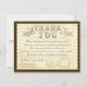 tarjeta de agradecimiento de boda con diseño de boleto con florituras antiguas y tipografía antigua.