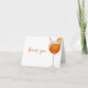 El diseño de la tarjeta de agradecimiento de boda con aperol spritz presenta un diseño moderno con un cóctel de aperol spritz decorado con una rodaja de naranja a un lado, con gracias escrito en una fuente de escritura a mano.