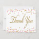 Tarjetas de agradecimiento rosas y doradas con confeti rosa y dorado y elegante escritura de agradecimiento en dorado. Puede personalizar fácilmente estas tarjetas de agradecimiento de estilo plano rosas y doradas simplemente agregando su mensaje en el estilo de fuente y redacción de su elección. También puede cambiar el color de fondo. Este es un diseño impreso sin purpurina real, confeti, etc.