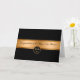 Tarjeta de felicitación de bienes raíces de alta gama con emblema de casa de aspecto metálico simulado y elemento de diseño en la parte frontal y las palabras "Felicidades por su nuevo hogar" que puede personalizar y hacer suya. Diseñada para enviar felicitaciones a sus clientes de bienes raíces para temas relacionados con agentes de bienes raíces, agencias o corredores que valoran a sus clientes.