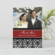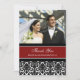 Tarjetas personalizadas de agradecimiento por el regalo de boda con foto en elegante patrón damask floral clásico rojo, negro y blanco. Totalmente personalizables, dos caras, disponibles en muchos productos coincidentes para todas tus necesidades de boda o fiesta. Contáctanos para solicitar un cambio de color o diseño personalizado.