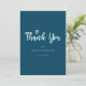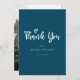 Las tarjetas de agradecimiento de boda de amor con foto presentan el elegante guión de agradecimiento de amor en azul bebé sobre un fondo de color azul marino y el reverso incluye una foto que puedes personalizar.