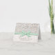 Tarjetas de agradecimiento de boda bonitas y femeninas con aspecto de encaje antiguo, encaje vintage y perlas con un diseño de cinta de costura de contraste verde menta impresa y un sutil fondo de damasco blanco cremoso y marfil. Agregue la firma de la feliz pareja y un mensaje especial dentro de la tarjeta. Diseñado y creado por Chrissy H. Studios, LLC. Todos los derechos reservados.
