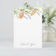 Expresa tu gratitud con estilo con estas tarjetas de agradecimiento de acuarela botánica, que presentan una delicada frontera superior de tarjetas de flores silvestres de naranja y lavanda en tonos suaves y pictóricos. Diseñada como parte de un conjunto de flores de acuarela para bodas coherente, esta elegante tarjeta de agradecimiento para bodas muestra las palabras "Gracias" en una elegante letra para un aspecto atemporal y elevado.