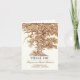 tarjeta de agradecimiento de boda rústica con diseño de árbol de roble marrón antiguo y corazón de madera tallada.
